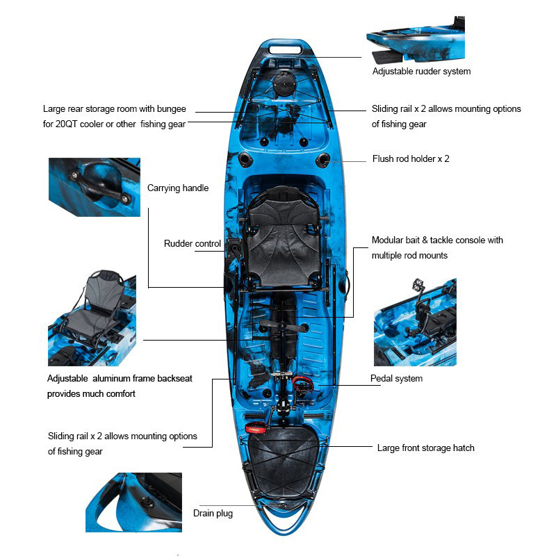 เรือคายัคแบบถีบตกปลา CHANHONE® นำเสนอเรือคายัคตกปลาแบบถีบขับเคลื่อนราคาไม่แพงมากในแพ็คเกจขนาดกะทัดรัดและว่องไว เรือคายัคแบบถีบที่ความสูง 3 เมตรพร้อมลำแสง 34.6 นิ้วรุ่นนี้ให้การทรงตัวได้มาก และเหมาะสำหรับการสำรวจและตกปลาในวันที่เงียบสงบในน่านน้ำภายในประเทศและปากแม่น้ำหรืออ่าวที่มีกำบัง เหมาะสำหรับจุดตกปลาล่อแสง!